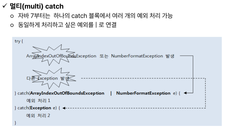 뒤에 예외는 여러 개 생길 수 있어서 .. 콤마로 이어서 적으면 된다.
