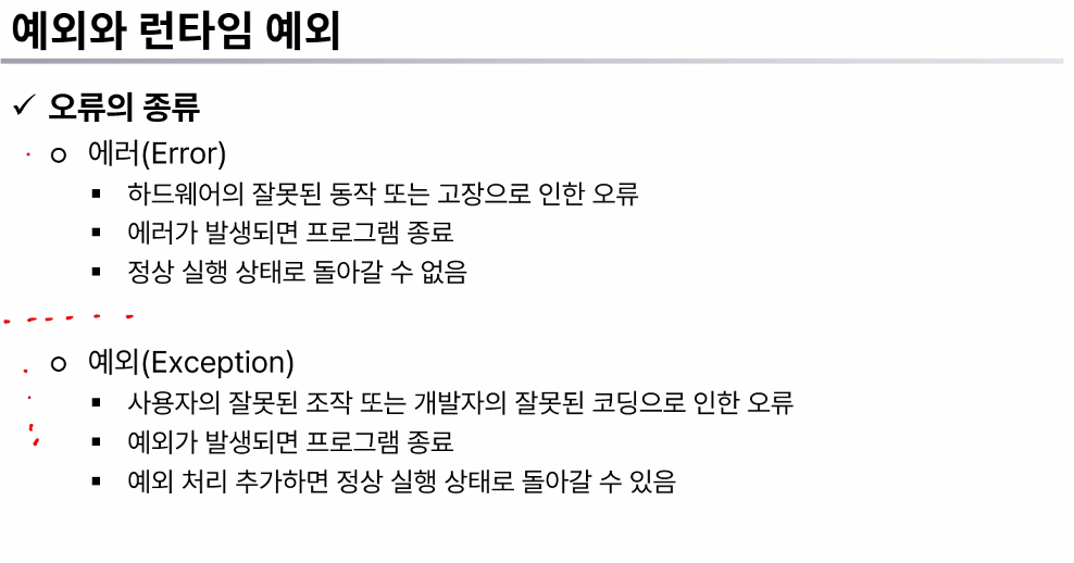 에러라고 말하는 건 사실 거의 "예외"이다. - 예외의 종류