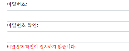에러 css 비밀번호 일치 여부 에러메시지 출력 코드