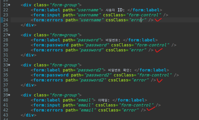 form 태그 라이브러리를 사용하면 유효성 검사로 에러메시지 출력을 쉽게 할 수 있다.