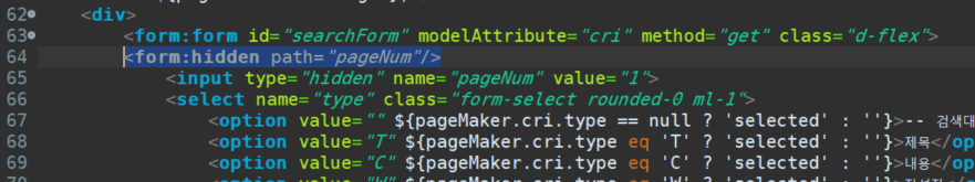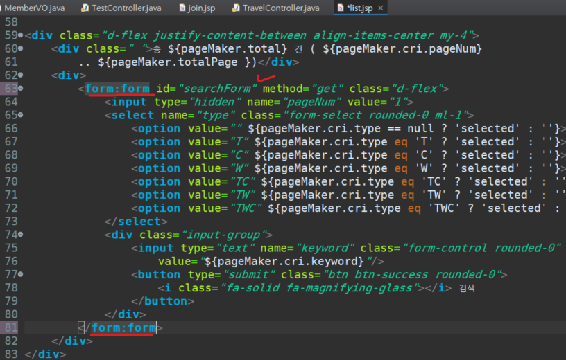 1. 검색할 때 썼던 폼을 스프링 폼 태그로 적용하기