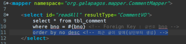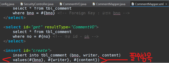 CommentMapper.xml 에서 필수항목 확인 (⭐구현 기능마다 확인할 것이다.)