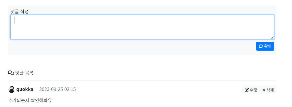 - 댓글 수정(수정 확인 + 수정 취소)