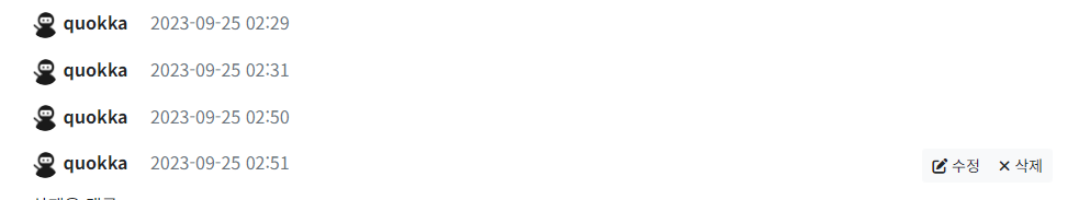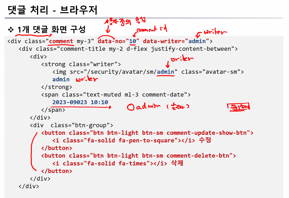0925. 댓글 화면 출력(댓글 작성, 수정-확인 및 취소, 삭제)Spring 2023. 9. 25. 18:55