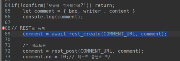 // REST로 등록 comment = await rest_create(COMMENT_URL, comment);