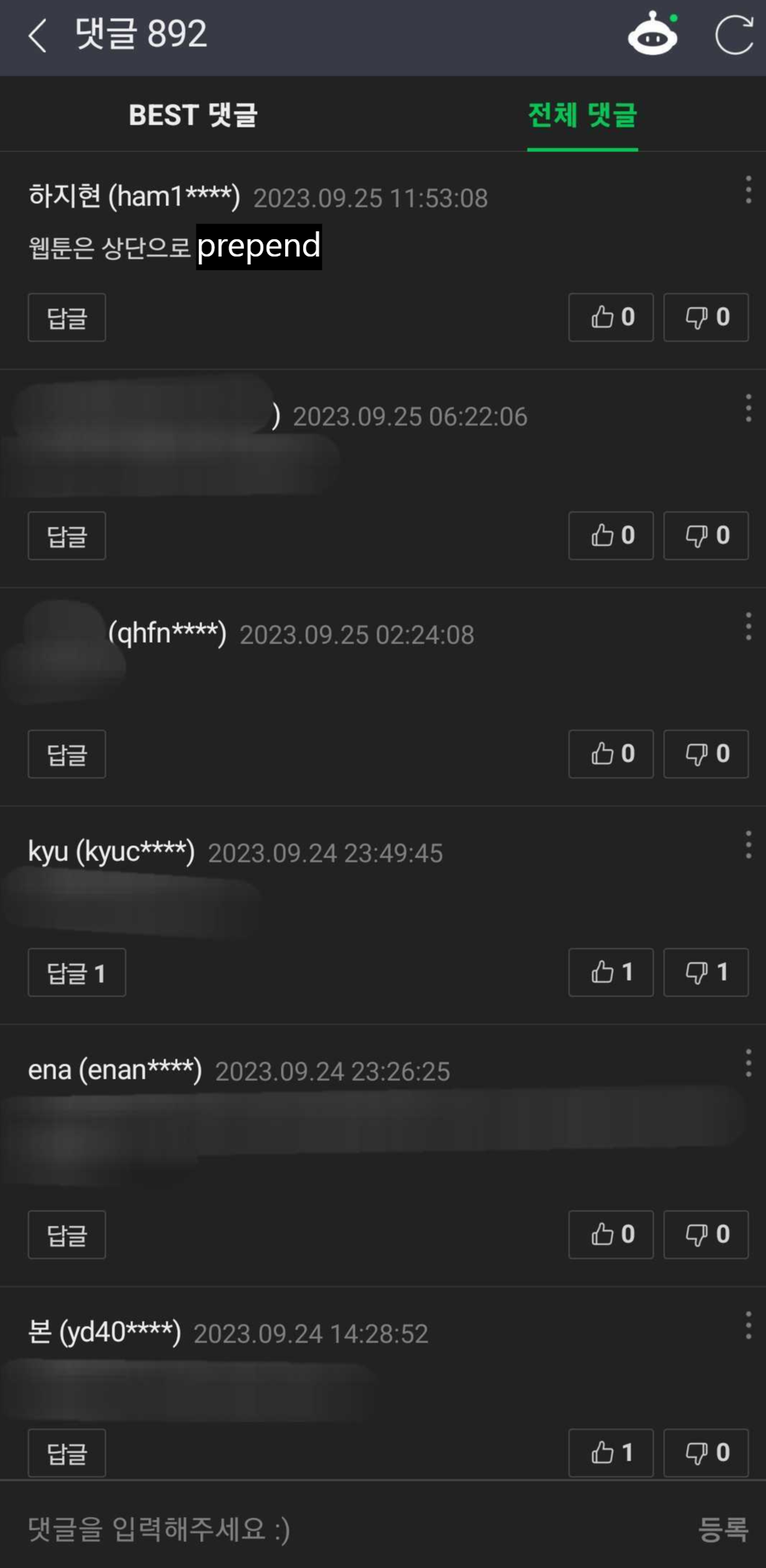 이제 댓글이 보여요!
