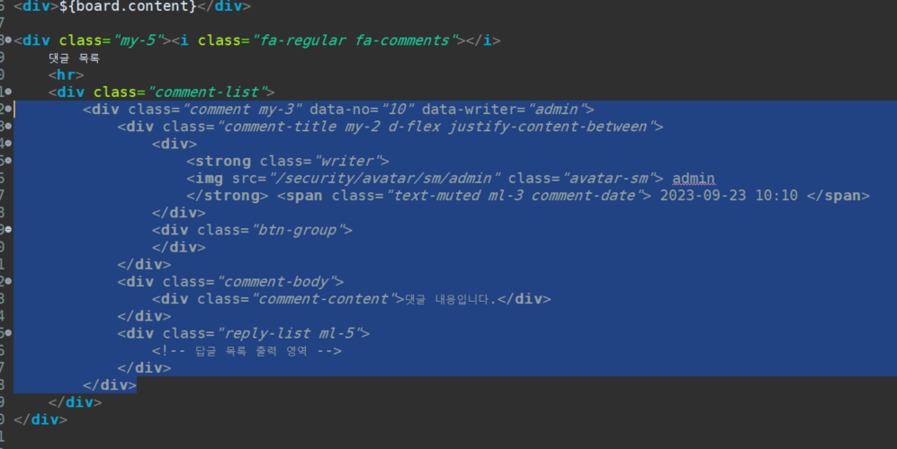 이제 comment-list div태그 사이에 댓글목록이 어떻게 보일지 처리