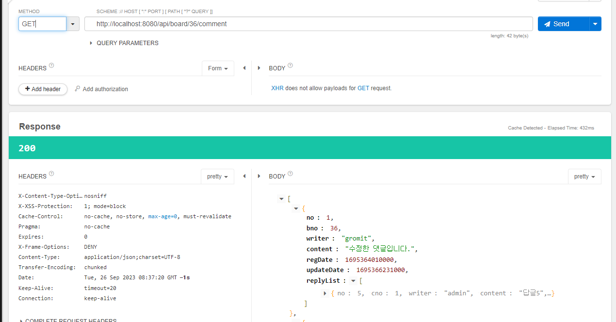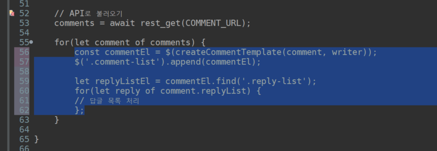 댓글 목록 불러올 때 같이 불러와야 하니까 그 안에 넣어주면 된다.