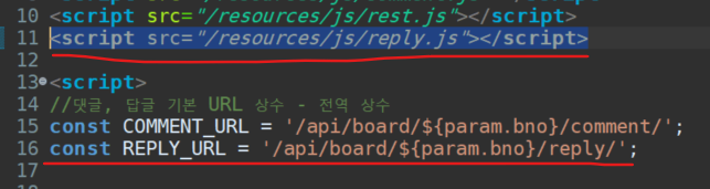 reply.js 만들었으니 스크립트 처리 + url 전역 상수