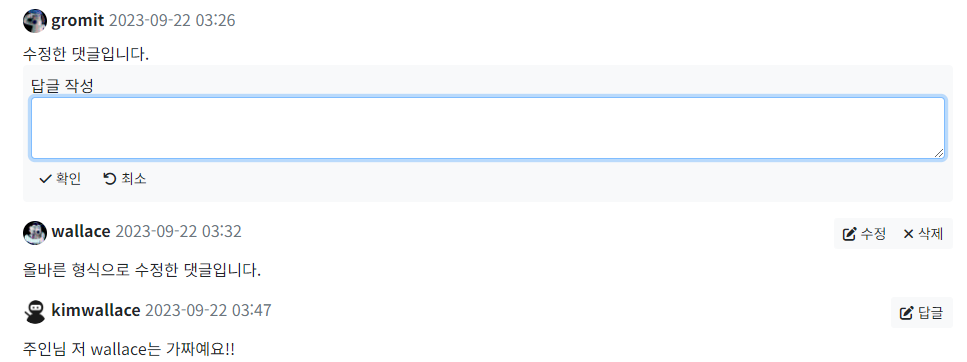 4. 답글 추가 "취소" 및 이벤트핸들링