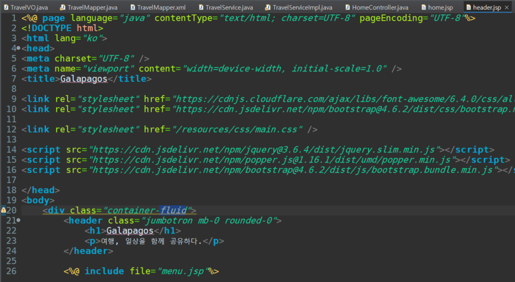 전체 화면을 채우고 싶으면 header.jsp 에서 container-fluid